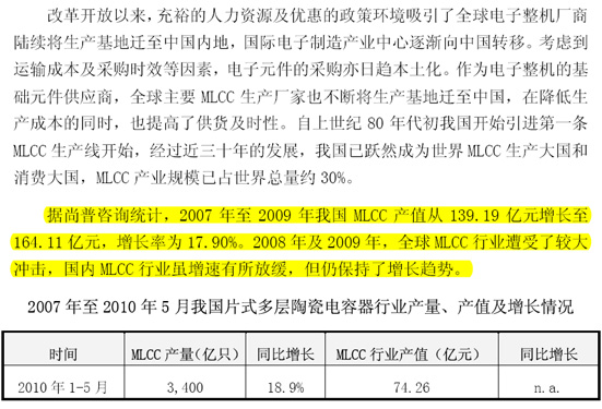 通过尚普咨询IPO细分市场研究形成的成果《2010-2013年中国片式多层陶瓷电容器(MLCC)市场分析研究报告》,有力的支撑了山东国瓷功能材料股份有限公司招股说明书当中的业务与技术部分的阐述,助企业最终成功过会一臂之力。本次山东国瓷功能材料股份有限公司成功过会,不但再次证实了尚普咨询在IPO咨询服务领域的实力和专业性,也验证了尚普咨询在新材料领域的行业分析和市场研究能力。