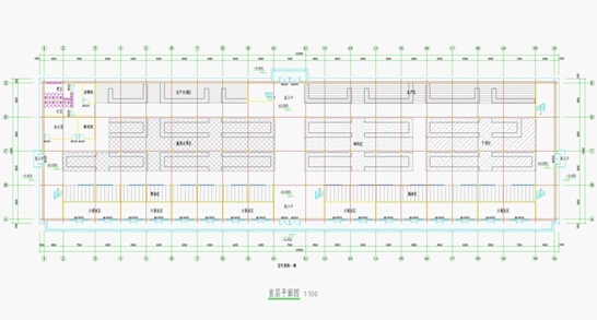 一层建设小商业区、粮油区、熟食区、蔬菜水果区、自产自销区、水产区、鲜肉区、干货区及办公室、杂物间、配电间、卫生间;