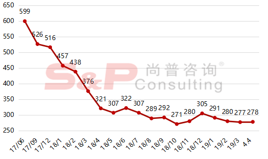 截止4月4日,排队企业的数量为278家,较上周增加1家。