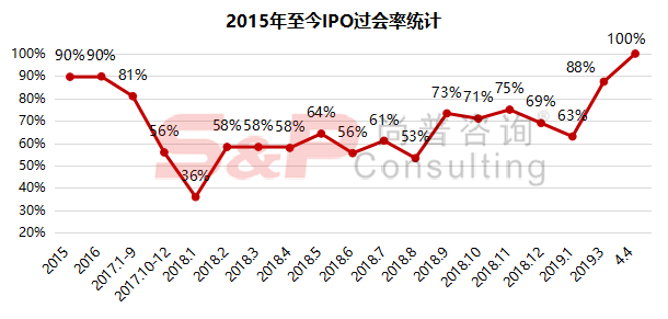 2019年4月4日,IPO过会率为100%,较2019年3月上升12%。