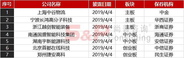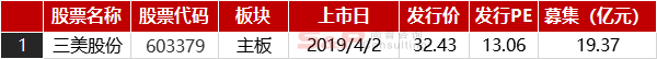 六、本周新股上市2019年4月1日至2019年4月4日